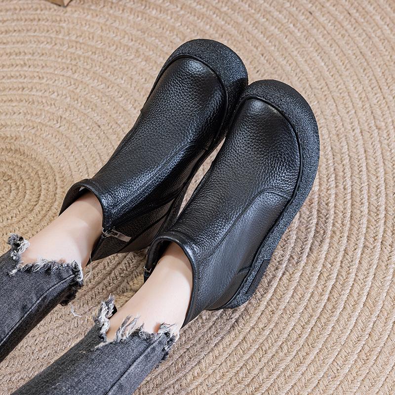 Кожаные ботильоны с круглым носком на плоской подошве, удобные, в стиле ретро, на молнии, универсальные, с мягкой подошвой, нескользящие ботинки Мартин — купить товар онлайн с бесплатной доставкой до всему миру!