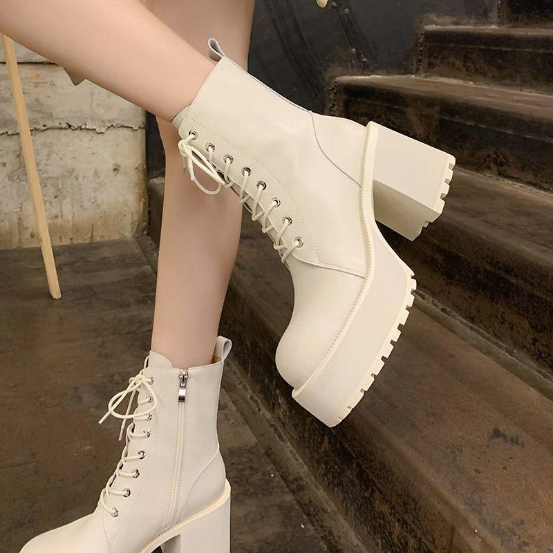 Женские ботинки Мартин на шнуровке с круглым носком и толстым каблуком, водонепроницаемые ботильоны на платформе, маленькие ретро ботинки из мягкой кожи для женщин