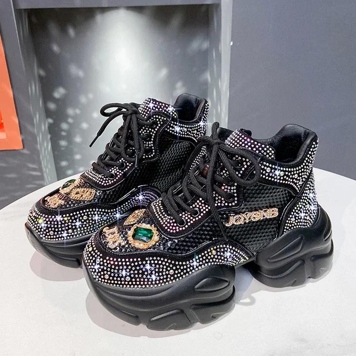 Модные Новые Повседневные Кроссовки на Платформе Синие Женские Кроссовки Обувь Femme Tenis Роскошные Теннисные Кристальная Отделка Женские Кроссовки на Шнуровке