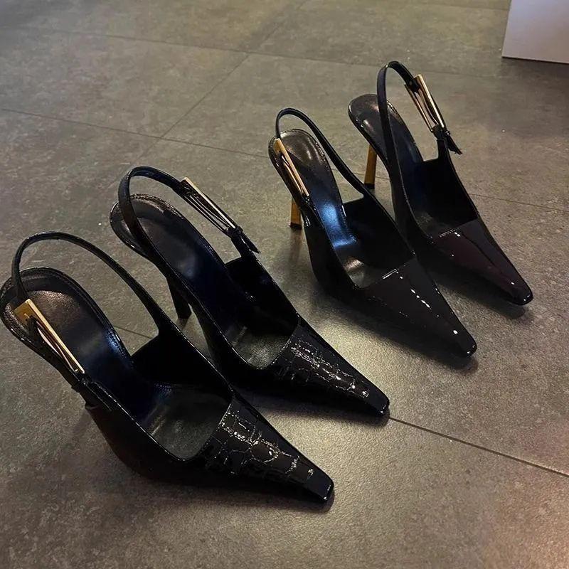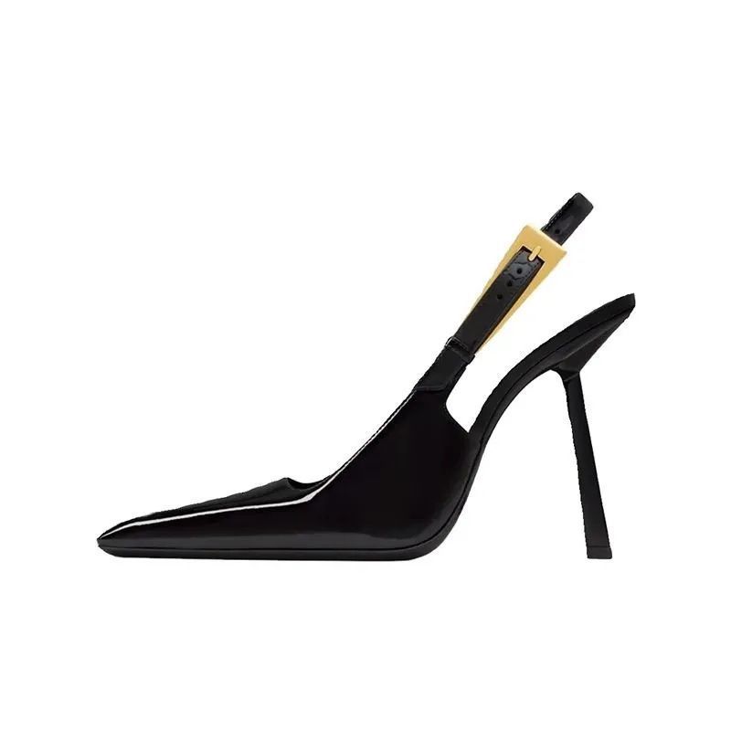 Черные туфли на высоком каблуке, остроносые, на тонком каблуке, весенние, с новым темпераментом, с высоким чувством стиля, сексуальные, из лакированной кожи, одинарные туфли, женские босоножки с закрытым носком