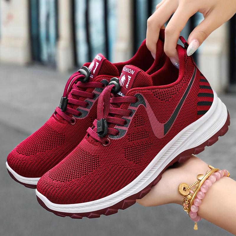 Женская обувь для ходьбы новая летняя дышащая сетчатая повседневная обувь для улицы с амортизацией обувь для ходьбы толстая подошва простая спортивная обувь