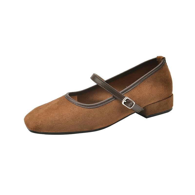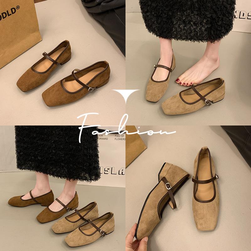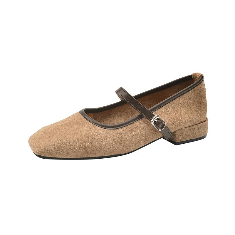 Ретро замшевые туфли с квадратным носком и неглубоким вырезом, женские туфли, новые весенне-осенние, с французским темпераментом, на низком каблуке, туфли Мэри Джейн