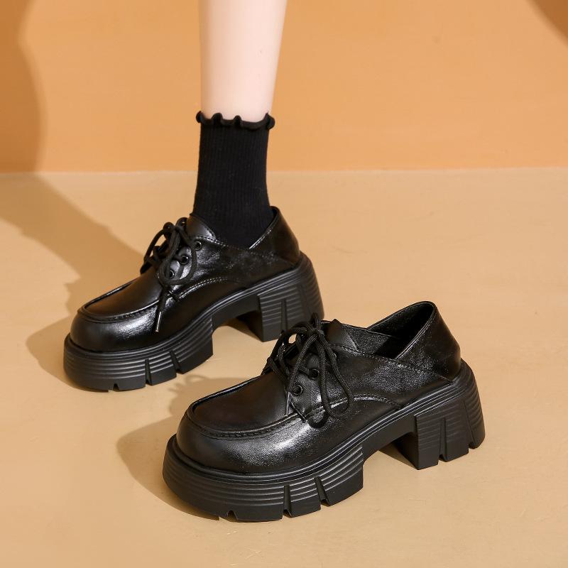 Женские весенне-осенние новые ретро одинарные туфли на шнуровке, женские туфли на толстой подошве-маффин в британском стиле, маленькие кожаные туфли для женщин