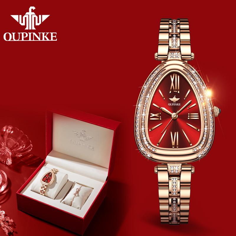 OUPINKE Новые женские часы для бизнеса и отдыха, бренд Tide, инкрустированный бриллиантами змеевидный циферблат, водонепроницаемые кварцевые часы высокого класса