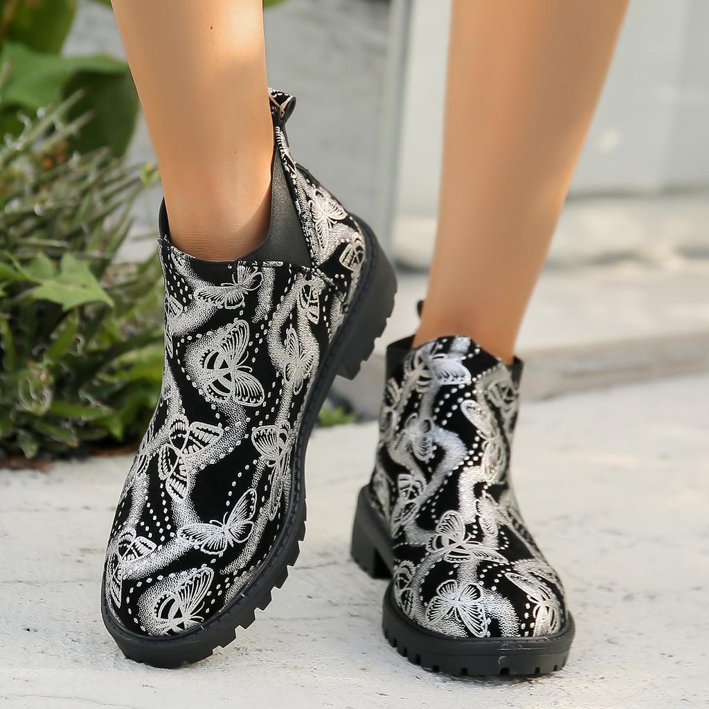 Новые осенне-зимние ботинки большого размера для женщин, европейские и американские короткие ботинки на толстом каблуке, женские ботинки Мартин с принтом — купить товар онлайн с бесплатной доставкой по всему миру!