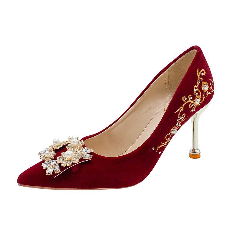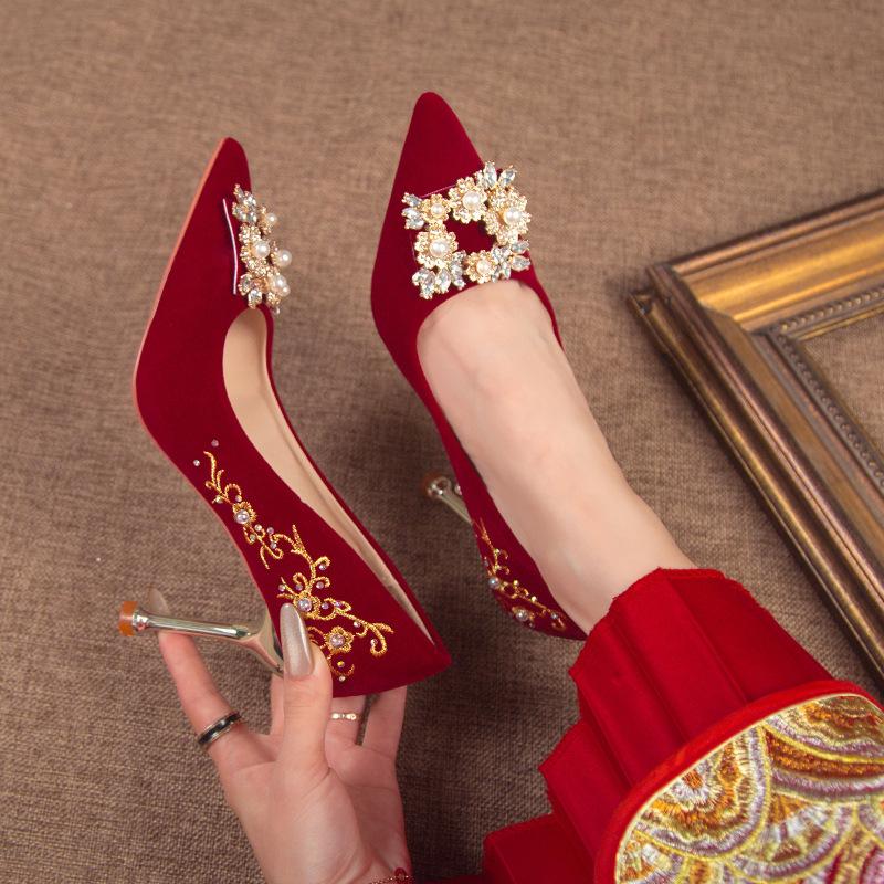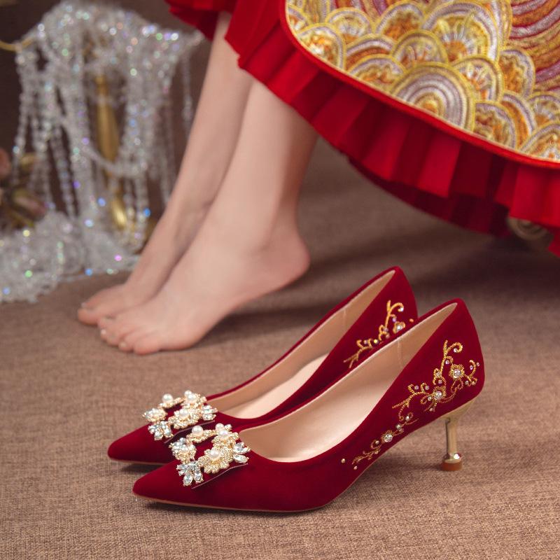Красные свадебные туфли осень новые свадебное платье Ципао двойного назначения свадебные туфли многокаблучные на высоком каблуке одинарные туфли