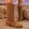 Новые ретро вышитые мартинсы большого размера с V-образным вырезом, женские осенне-зимние ботинки на толстом каблуке средней высоты, в западном стиле