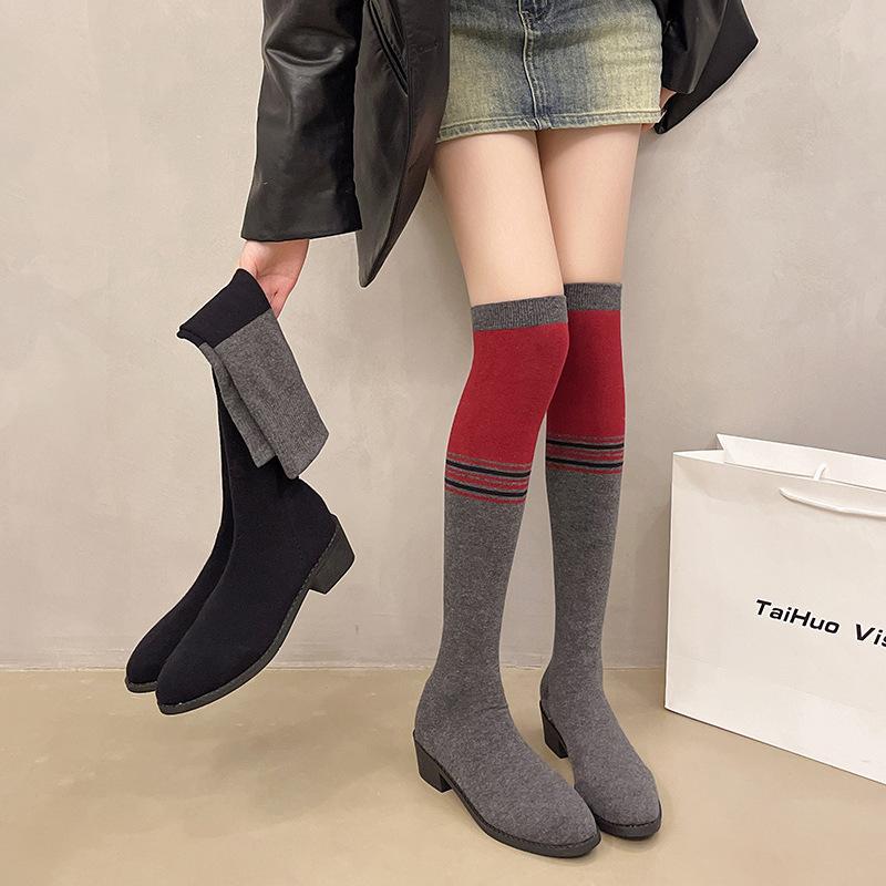 Осень и зима новая модная обувь большого размера ботинки на толстой подошве тонкие ботинки ботинки-носки ботфорты эластичные ботинки женщины