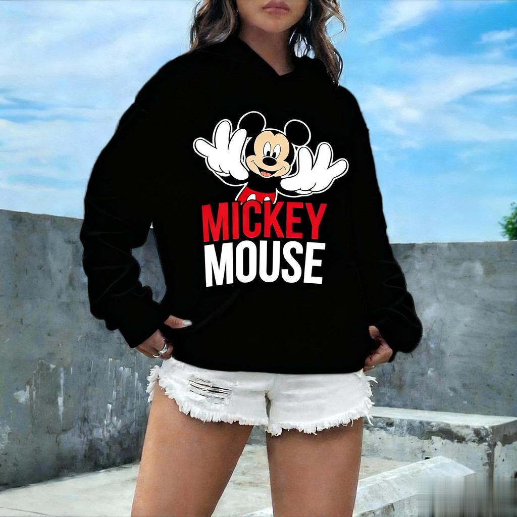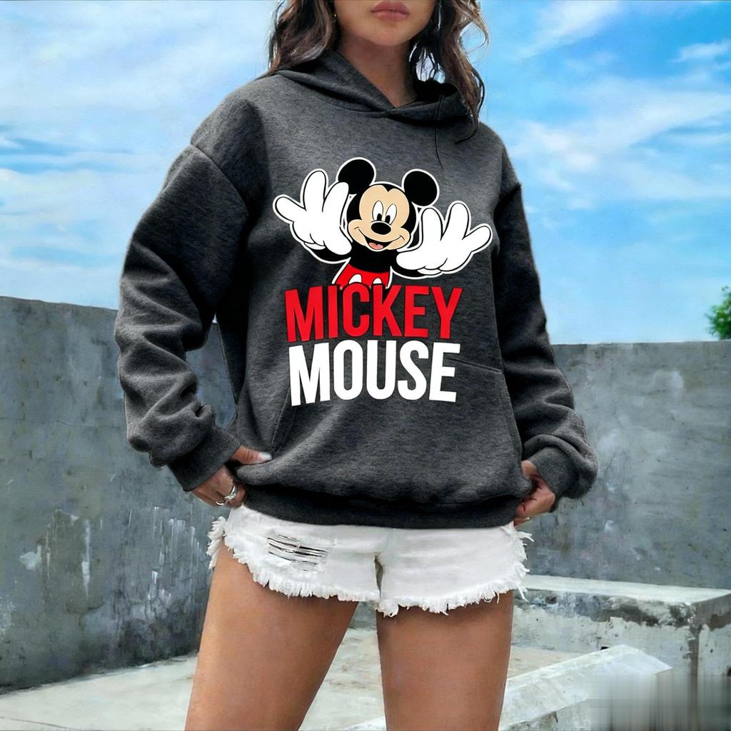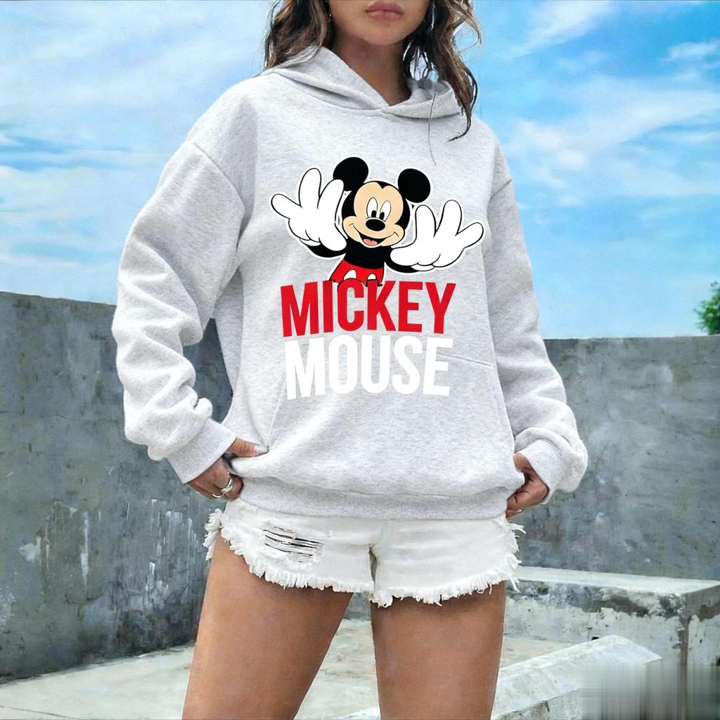 Винтажное худи с принтом Микки Мауса Дисней Женское Мужское Осень Оверсайз Повседневный Уличный стиль Мультяшный Графический Пуловер Толстовка Модные Топы