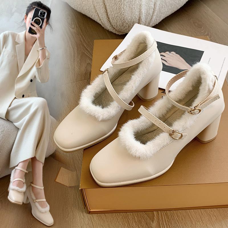 Женские туфли на высоком каблуке, новые, из норки, французский толстый каблук, сказочный стиль, с ремешком Мэри Джейн, ретро, квадратный носок, одинарные туфли