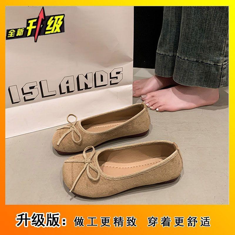 Нежные балетки большого размера на мягкой подошве, туфли-бини, женские, весна и лето, новые, с бантом, с открытым верхом, одинарные туфли
