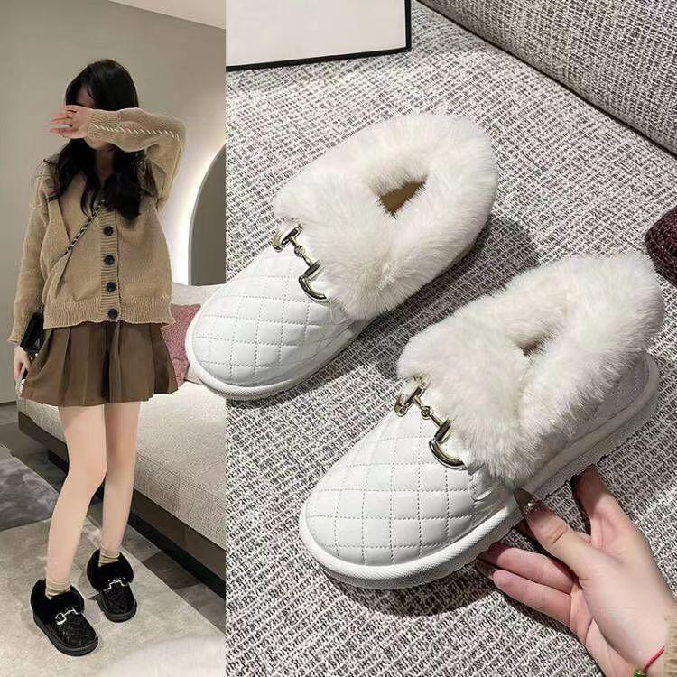 Новые женские зимние ботинки для снега, повседневная обувь, бархатные хлопковые ботинки, низкие, ленивые, шапка-бини