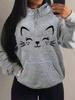 Простой узор с кошачьим смайликом, женская толстовка, модная, повседневная, уличный тренд, личность, хип-хоп толстовка, трендовый пуловер, графика