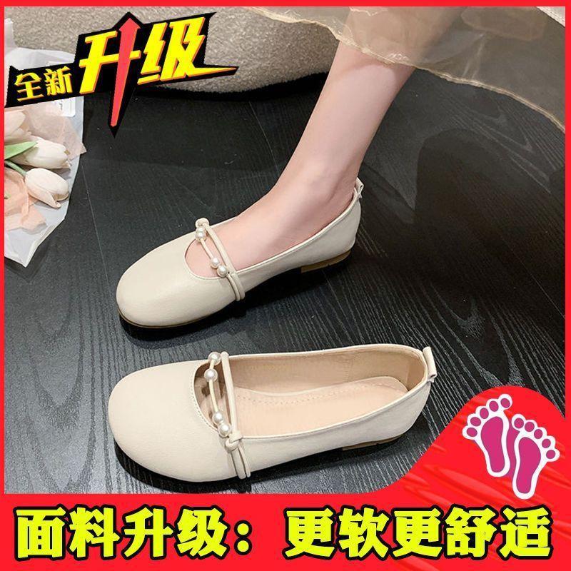 Бежевые туфли Мэри Джейн на плоской подошве, женские туфли, весна и осень, маленькие кожаные туфли, летние новые туфли с неглубоким вырезом и мягкой подошвой