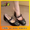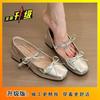 Одно слово в сказочном стиле с юбкой туфли Мэри Джейн квадратный носок бант французский ретро серебристый толстый каблук одинарные туфли