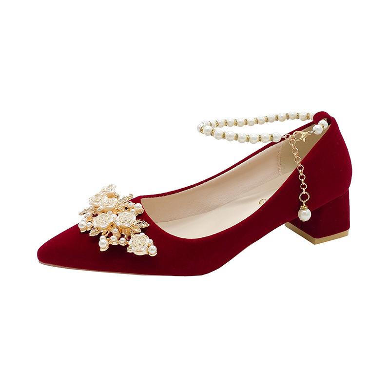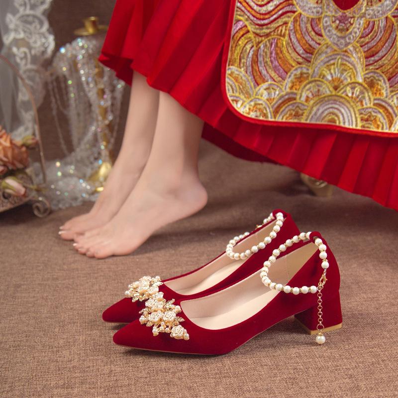 Красные свадебные туфли на высоком каблуке женские новые ремешки с бисером невеста тосты Сюхэ свадебное платье два способа носки не устают ноги женская обувь