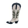 Кактус ковбойские сапоги женские осенние новые на толстом каблуке с острым носом европейские и американские сапоги с вышивкой и заклепками