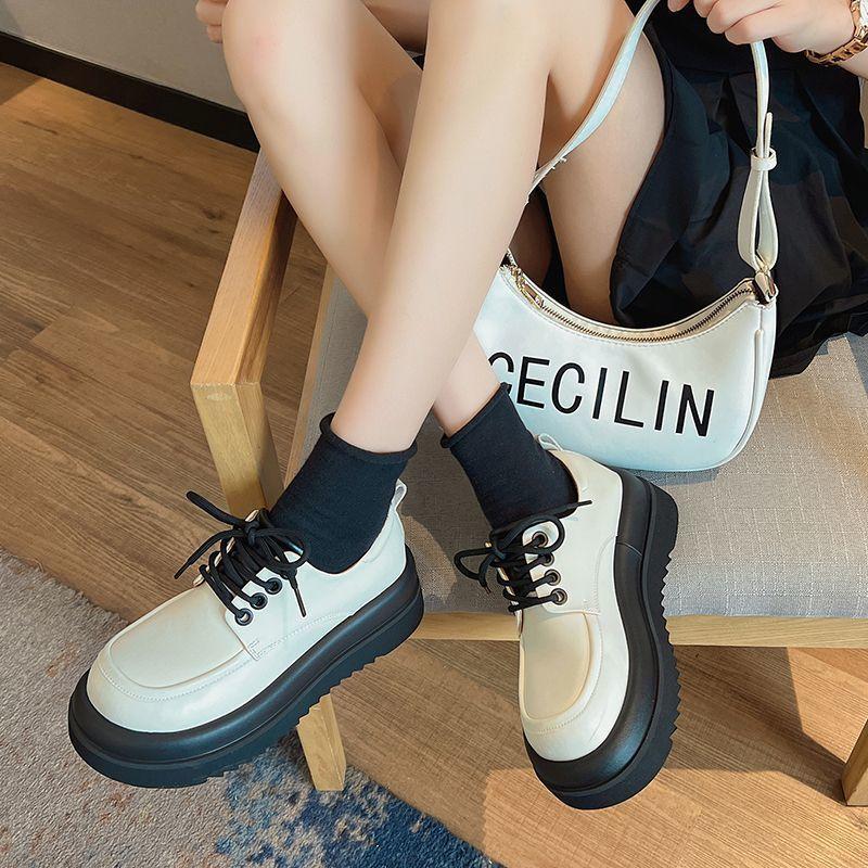 Британский стиль мода инс одинарная обувь женская весна и осень новая универсальная шнуровка платформа маффин круглый носок маленькие кожаные туфли