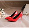Черные туфли на высоком каблуке с красной подошвой для женской весны, новые, с острым носком, на тонком каблуке, сексуальные, с глянцевым темпераментом, одинарные туфли, женские туфли из лакированной кожи