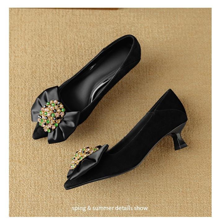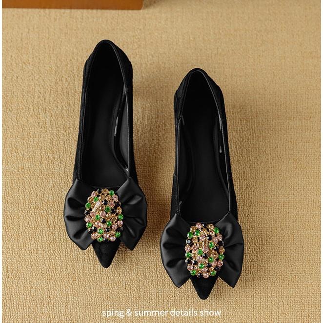 Цветной стразовый бант, остроносые туфли на высоком каблуке, весна, новая кожа, с мелким вырезом, темпераментные, фиолетовые, на среднем каблуке, одинарные туфли