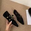 Французские ретро туфли Мэри Джейн с острым носком женские новые замшевые туфли на плоской подошве с юбками универсальные маленькие кожаные туфли
