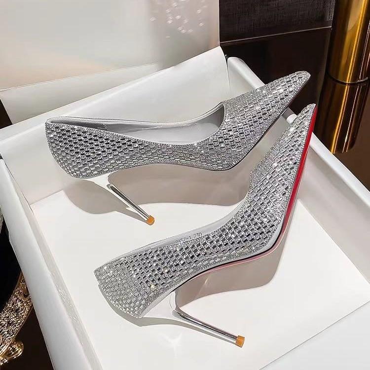 Модная банкетная женская обувь тонкий каблук мелкий вырез острый носок сексуальный тонкий страз цветной бриллиант высокий каблук обувь на четыре сезона