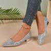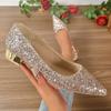 Блестящие хрустальные туфли с пайетками, женские туфли на низком каблуке, новые, с острым носком, большого размера, для светских львиц, серебристые свадебные туфли для невесты