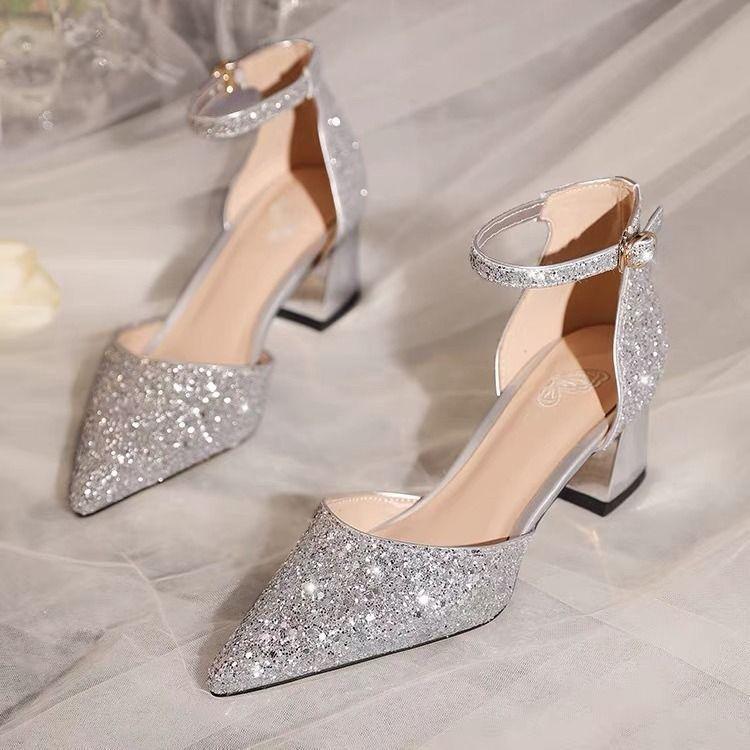 Блестки полые слова с туфлями на высоком каблуке женские весна и лето новая мода толстый каблук высокий каблук сумка голова сандалии женские