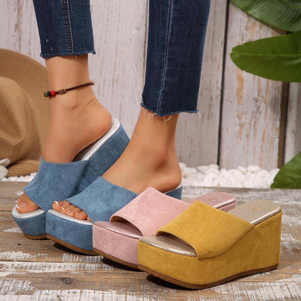 Модные женские сандалии на танкетке и платформе 2025 лето новые шлепанцы модные сандалии на высоком каблуке большого размера на толстой подошве пляжная обувь женская