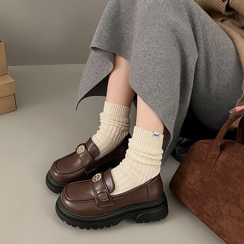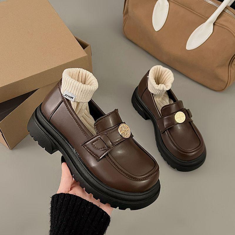 Модные туфли Doudou маленькие кожаные туфли женские новые японские на платформе на толстом каблуке лоферы одинарные туфли женские