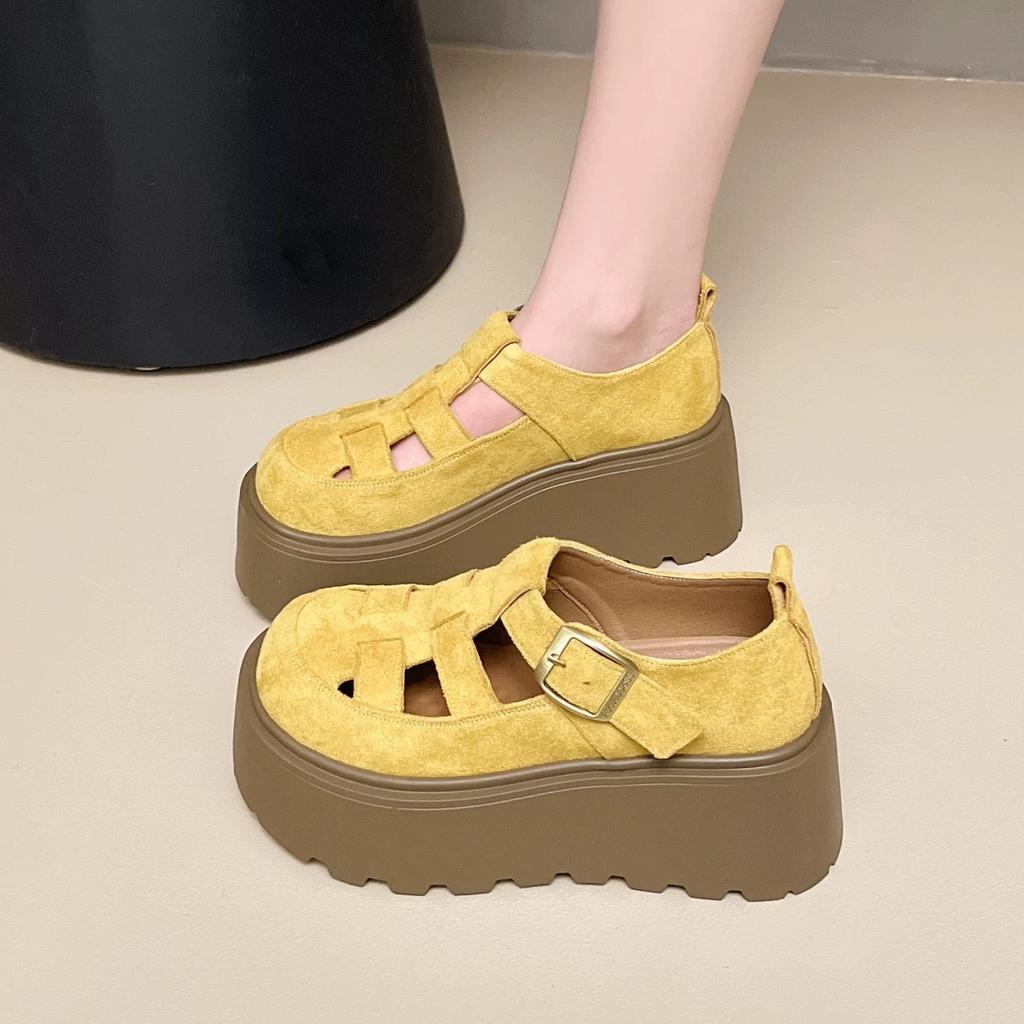 Нишевые полые римские сандалии женские летние новые на платформе с толстой подошвой, с закрытым носком, туфли-клетка для свиньи, маленькие кожаные туфли в британском стиле