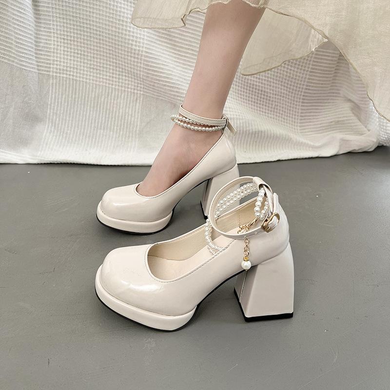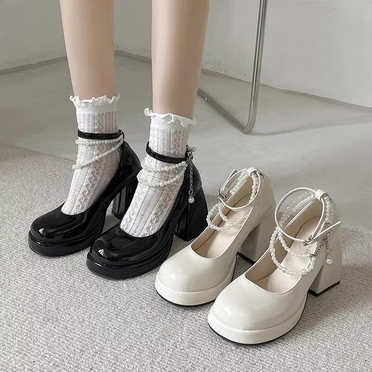 Весна и Осень Французский Сказочный Ветер Водонепроницаемые Туфли Мэри Джейн на Платформе и Высоком Каблуке Женские Туфли на Толстом Каблуке с Одной Пуговицей