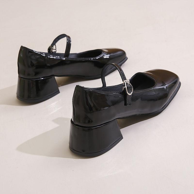 Маленькие кожаные туфли новая летняя толстый каблук высокий каблук с юбкой темперамент французский серебристый Мэри Джейн женские туфли одинарные туфли