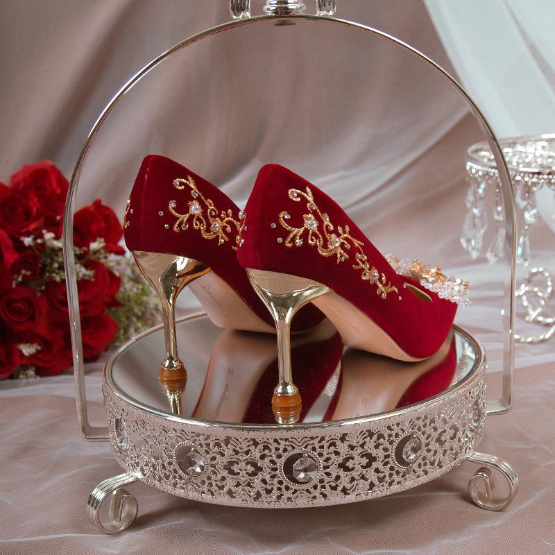 Красные свадебные туфли осень новые свадебное платье Ципао двойного назначения свадебные туфли многокаблучные на высоком каблуке одинарные туфли