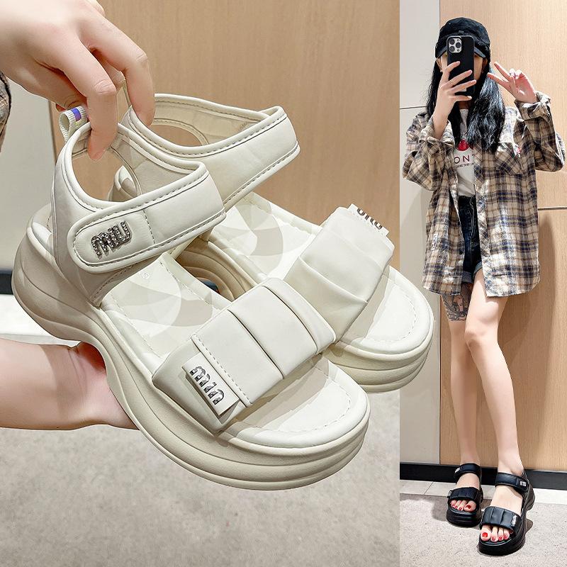 Летние новые простые сандалии на толстой подошве, на легкой подошве, на мягкой подошве, на липучке, женские, увеличивающие рост, пляжная обувь, женская обувь