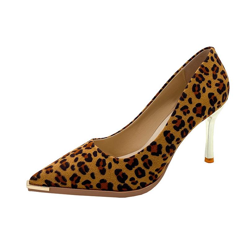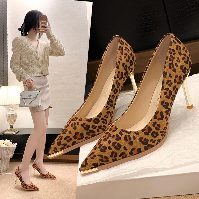 Новые замшевые боковые пустые туфли на высоком каблуке женские тонкие каблуки модные легкие с открытым носком сексуальные универсальные остроносые профессиональные одинарные туфли с леопардовым принтом