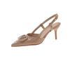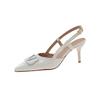 Новый летний темперамент высокие каблуки французский тонкий каблук острый носок одно слово красивая сумка голова сандалии телесные женские туфли