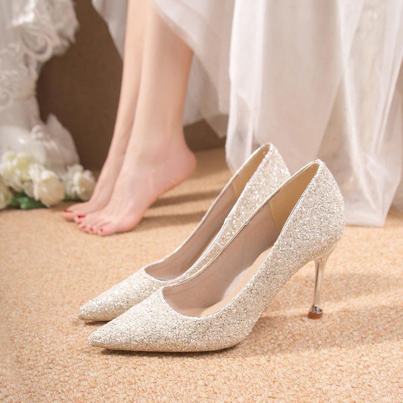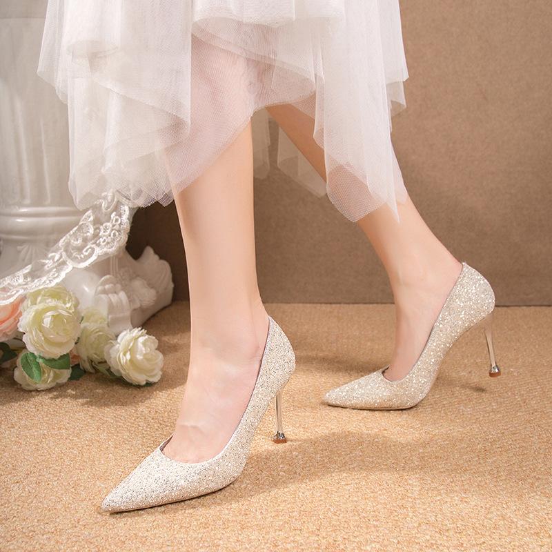Свадебные туфли большого размера туфли женские для показа основное свадебное платье туфли подружки невесты высокий уровень хрустальные высокие каблуки годовое собрание туфли-лодочки