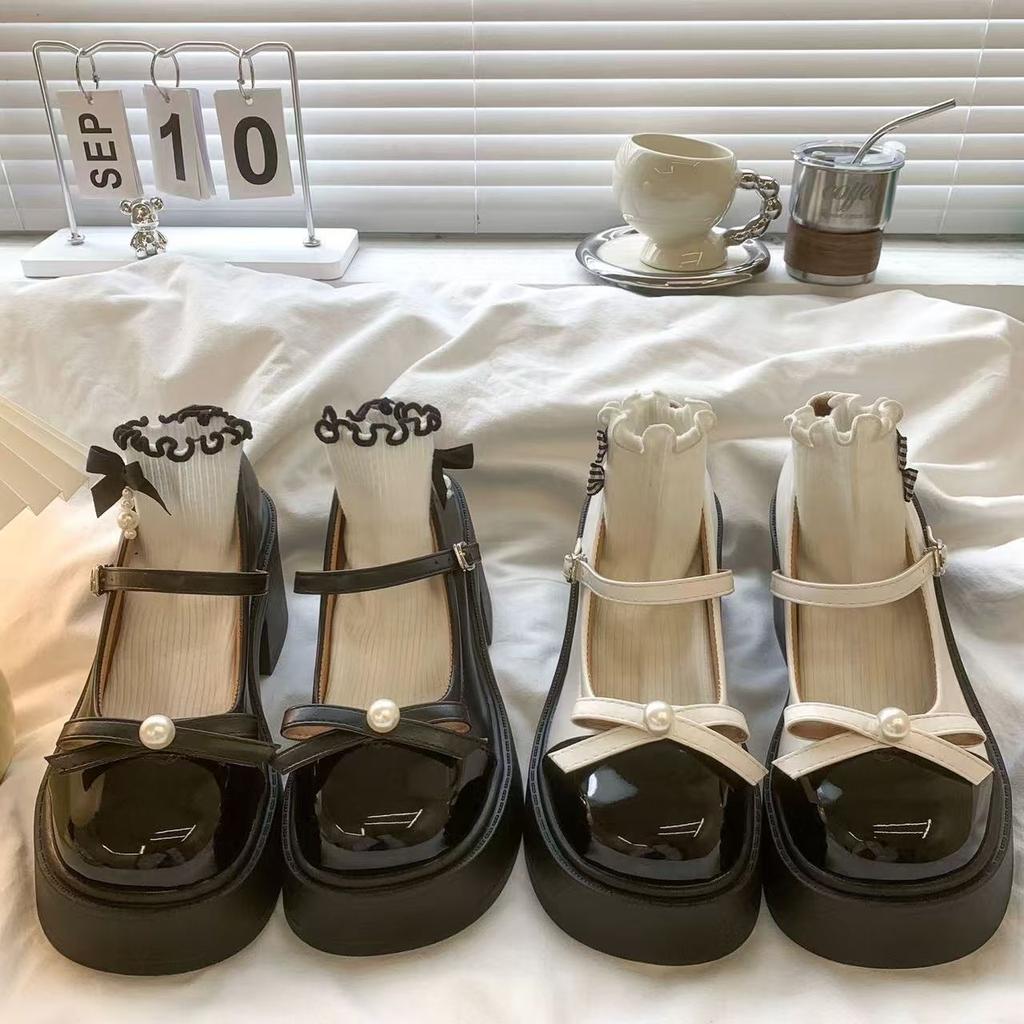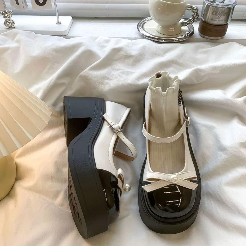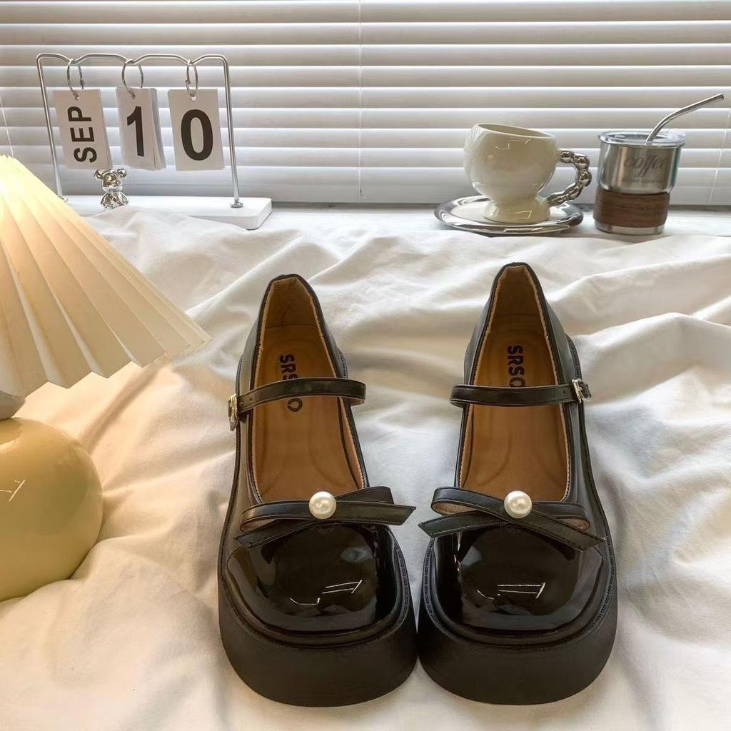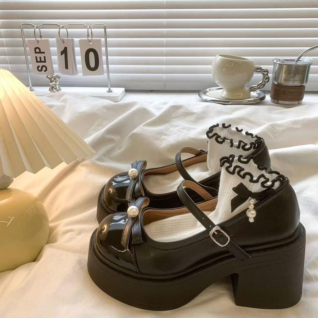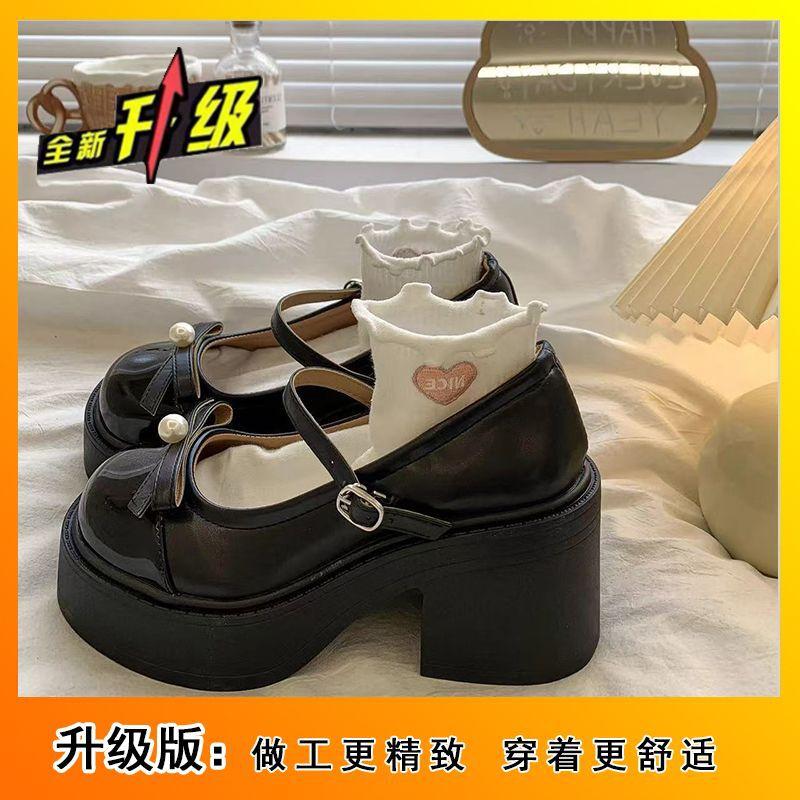 Ретро круглый носок бант жемчуг платформа толстый каблук jk маленькие кожаные туфли высокий каблук туфли Мэри Джейн женские летние новые