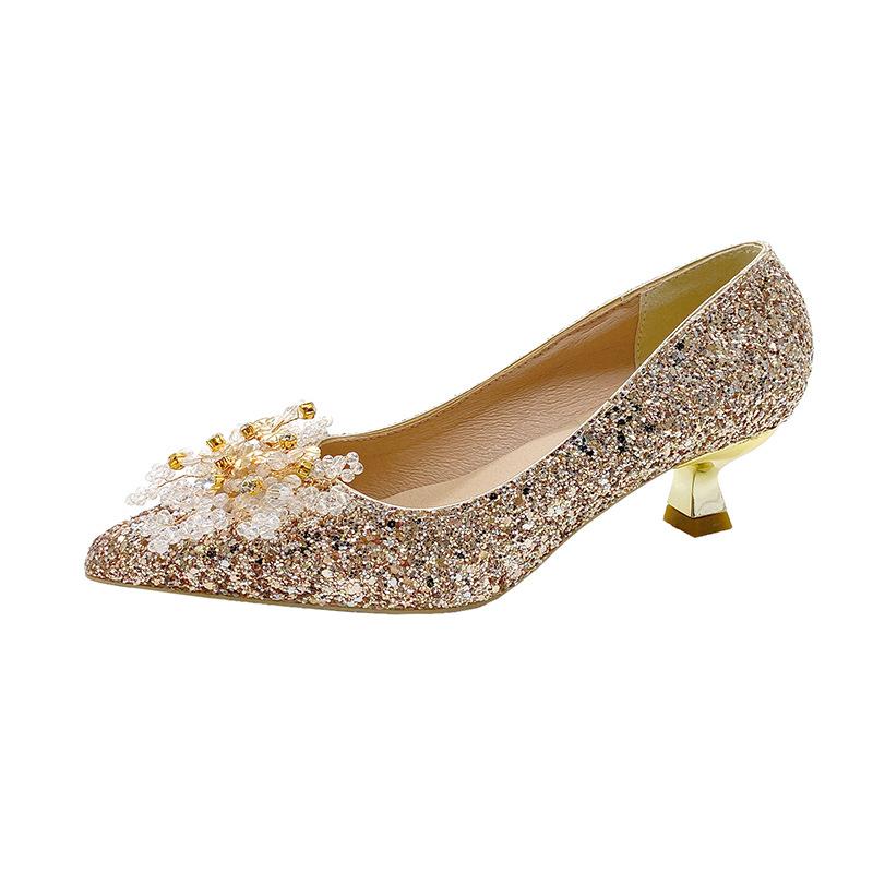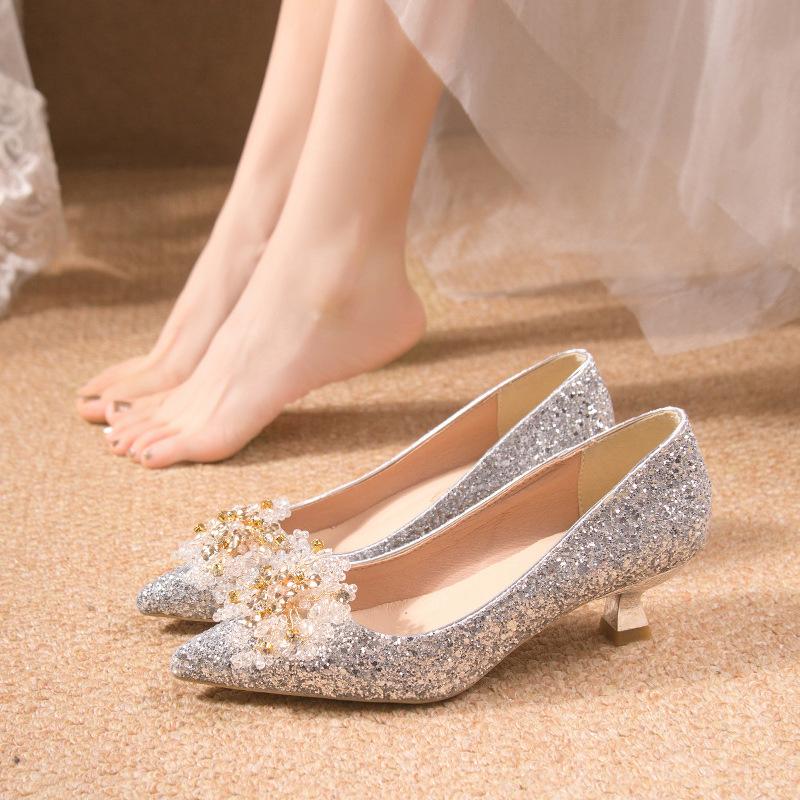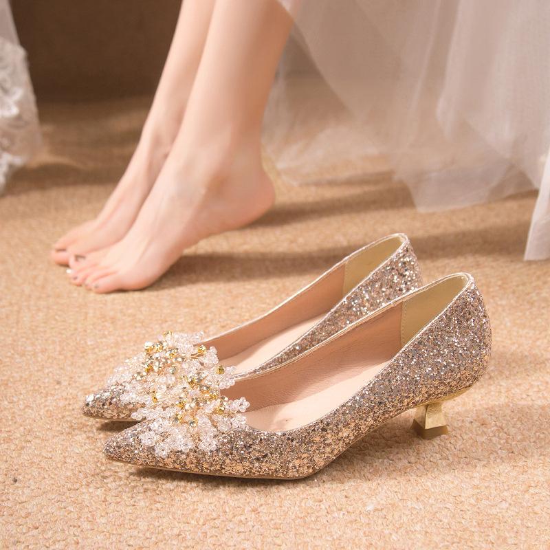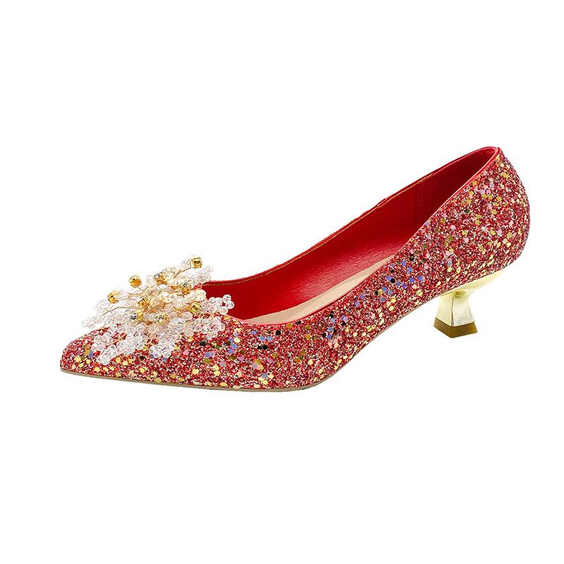 Весенние свадебные туфли большого размера французского красного цвета, туфли для невесты со стразами, низкий каблук, женские остроносые туфли