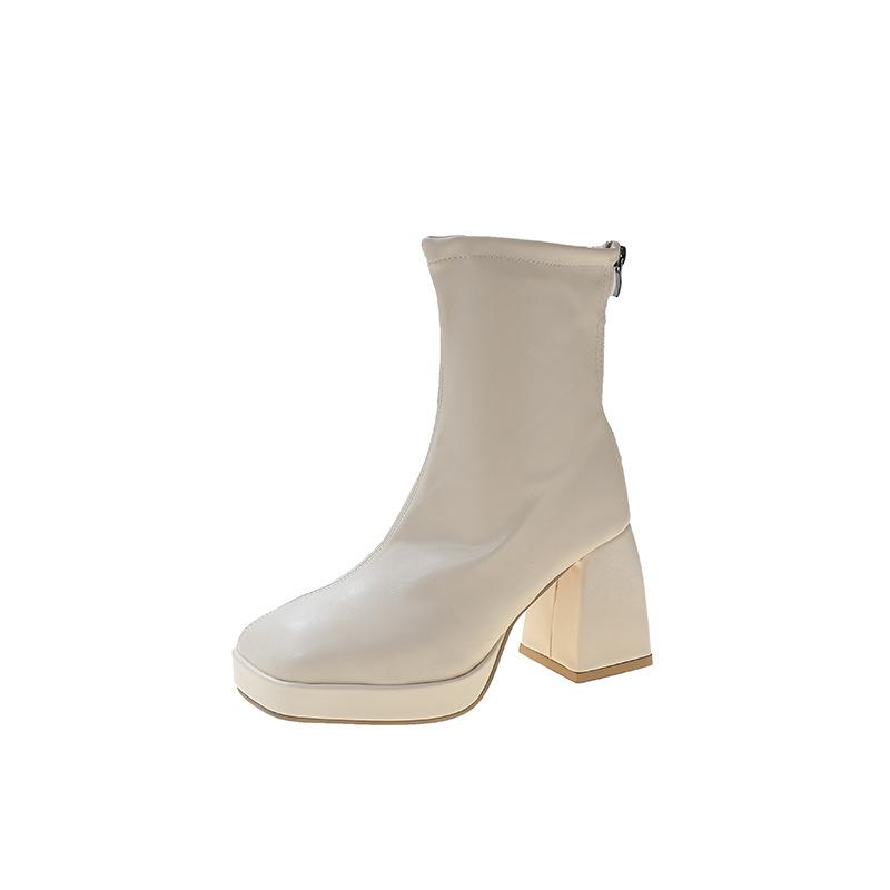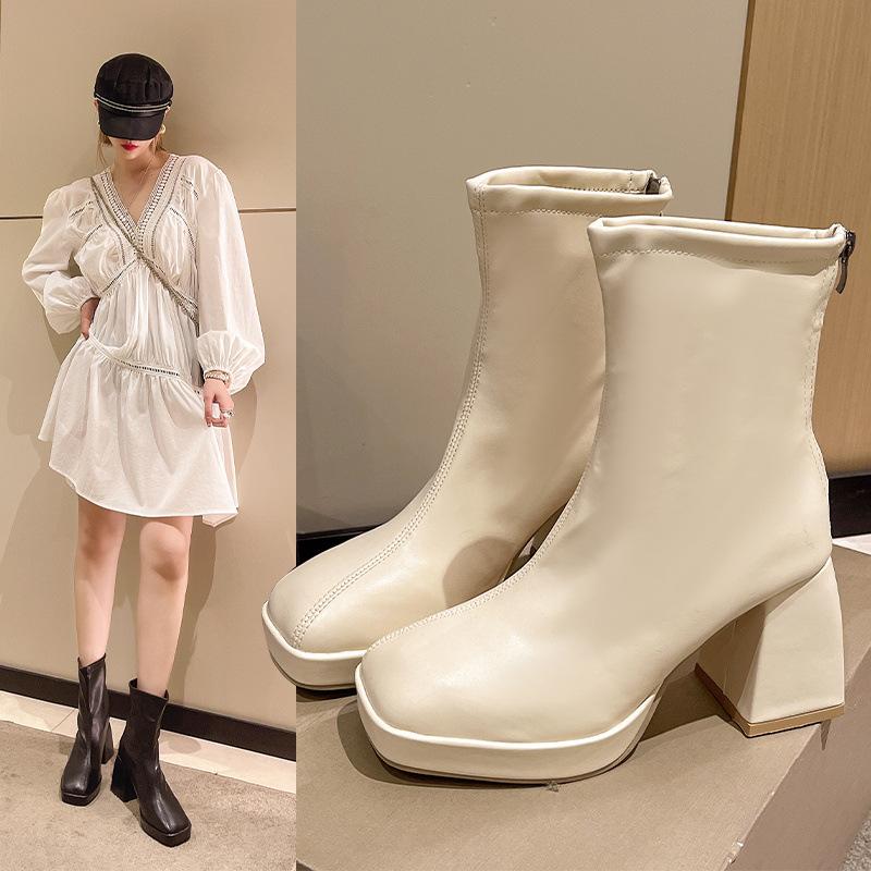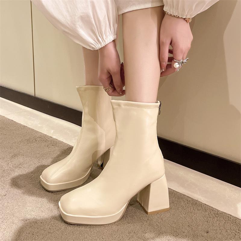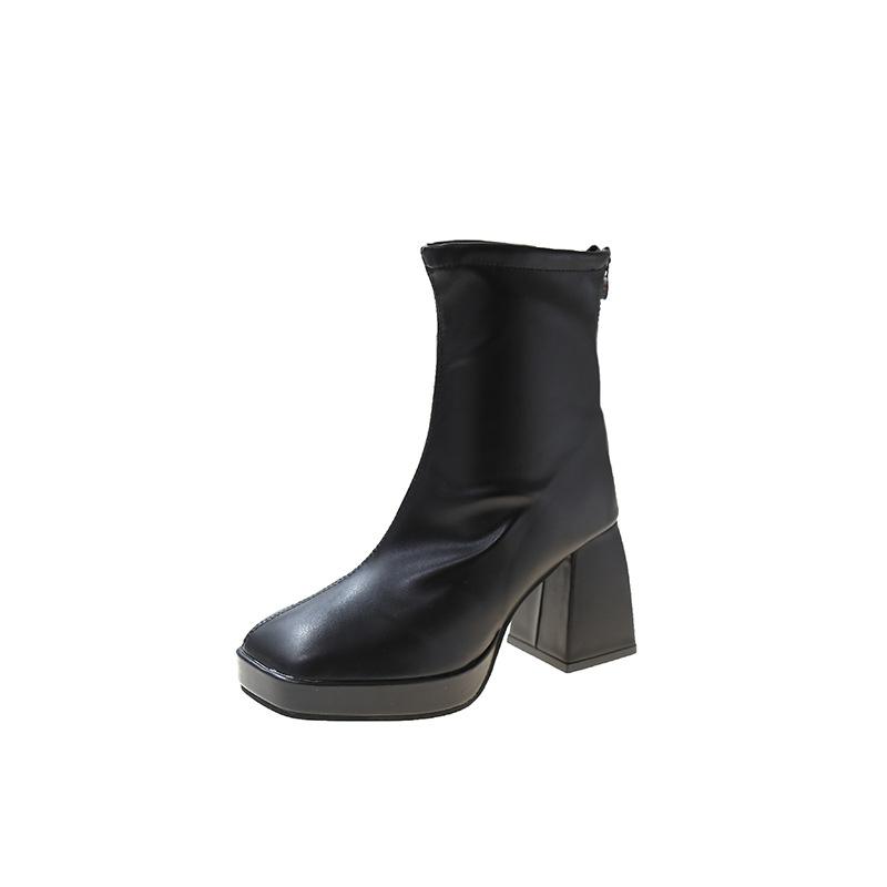 Женские ботинки Мартина осень-зима новая мода квадратный носок европейский и американский ретро высокий каблук толстый каблук задняя молния тонкие короткие ботинки