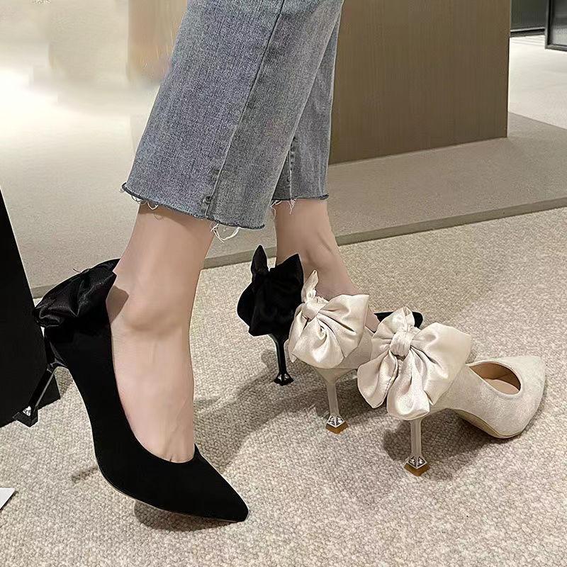 Универсальные туфли-стилетто, нишевый дизайн, бант, темпераментные туфли на высоком каблуке, осенние новые остроносые туфли-лодочки для женщин