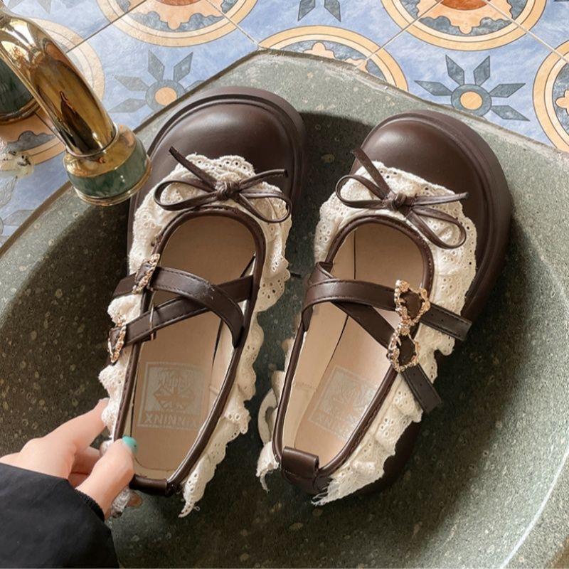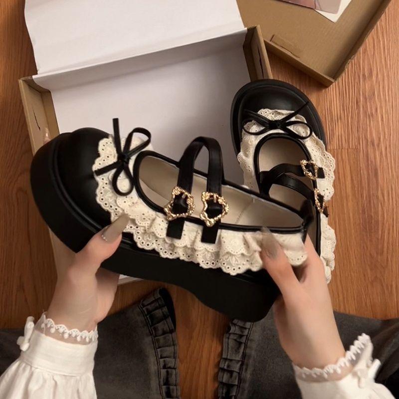 Ретро бант платформа маленькие кожаные туфли женские новые весна и осень с юбкой французские Мэри Джейн одинарные туфли