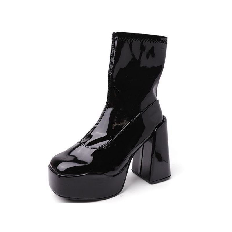 Ботильоны на толстой подошве и толстом каблуке, женские осенние новые модные облегающие тонкие ботинки из лакированной кожи на супервысоком каблуке, ботинки Мартин