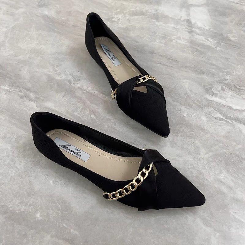 Остроносые туфли-лодочки женские на мягкой подошве новая летняя универсальная обувь маленький ароматный ветер легкий вырез черные всесезонные на плоской подошве женские туфли