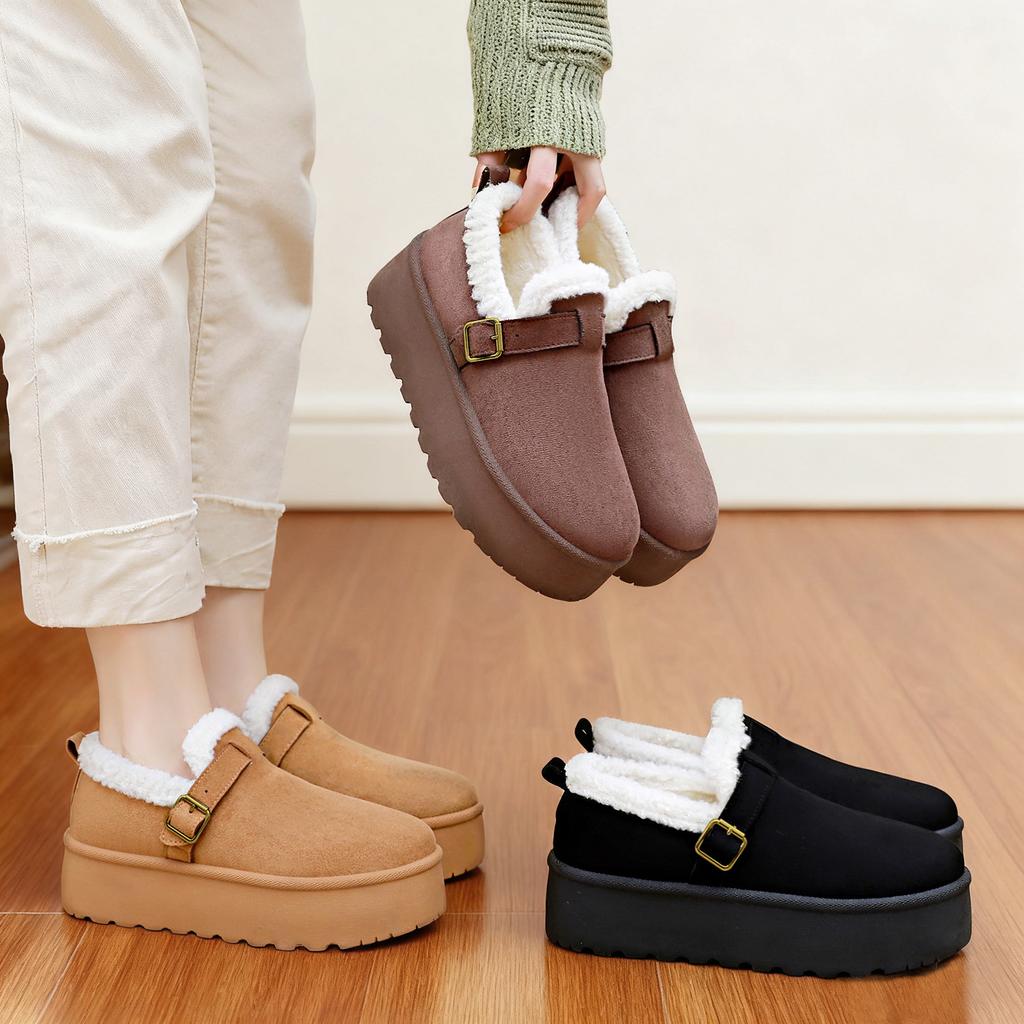 Зимние бархатные туфли женские большого размера хлопковые туфли TEMU зимние ботинки на толстой подошве с увеличением роста хлопковые ботинки теплые пушистые туфли