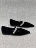 Модные туфли Мэри Джейн на плоском каблуке из бархата для женщин Весна Осень Острый носок Низкий Бриллиантовый Голубой Кожаный интерьер Резиновая подошва