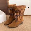 Модные осенне-зимние женские ботинки-вестерны на толстом каблуке 2025, сексуальные полусапоги с острым носком, женские сапоги для верховой езды из искусственной замши, на молнии — купить товар онлайн с бесплатной доставкой по всему миру!