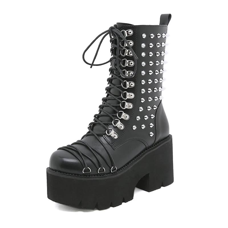 Модные женские мотоциклетные панк-ботинки Mori Girl Lady Lolita Ботинки Женские высокие ботинки на платформе Модные заклепки Готика Дарк — купить товар онлайн с бесплатной доставкой по всему миру!