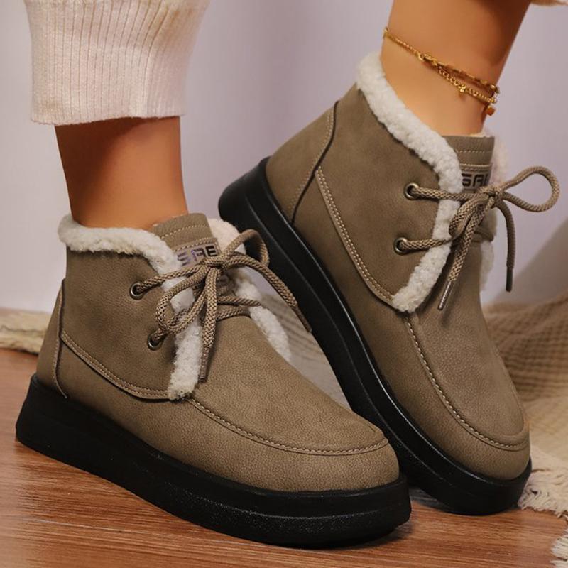 Модные Ретро Флисовые Толстые Теплые Ботильоны Женские На Шнуровке Платформа Снежные Ботинки Женские Зимние Из ПУ Кожи Короткие Плюшевые Ботильоны Женские — купить товар онлайн с бесплатной доставкой по всему миру!